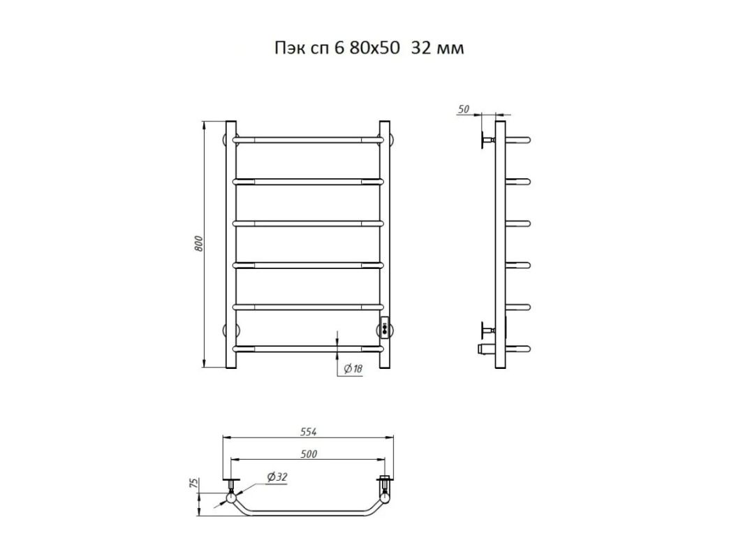 Электрический полотенцесушитель Тругор ПЭК 6 СП 80x50 см, цвет хром. Используется для просушки влажных вещей и полотенец, а также дополнительного обогрева помещения. Изготовлен из пищевой нержавеющей трубы марки AISI 201, которая отличается стойкостью к высоким температурам и образованию коррозии.