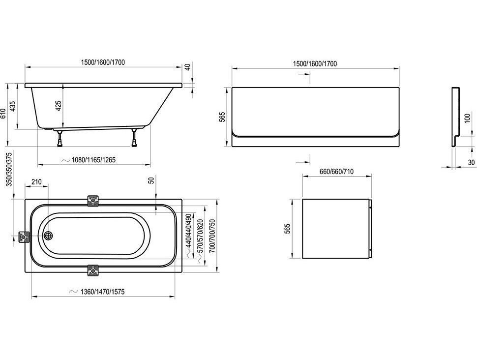 Крепление для установки панели к ванне приобретается отдельно.