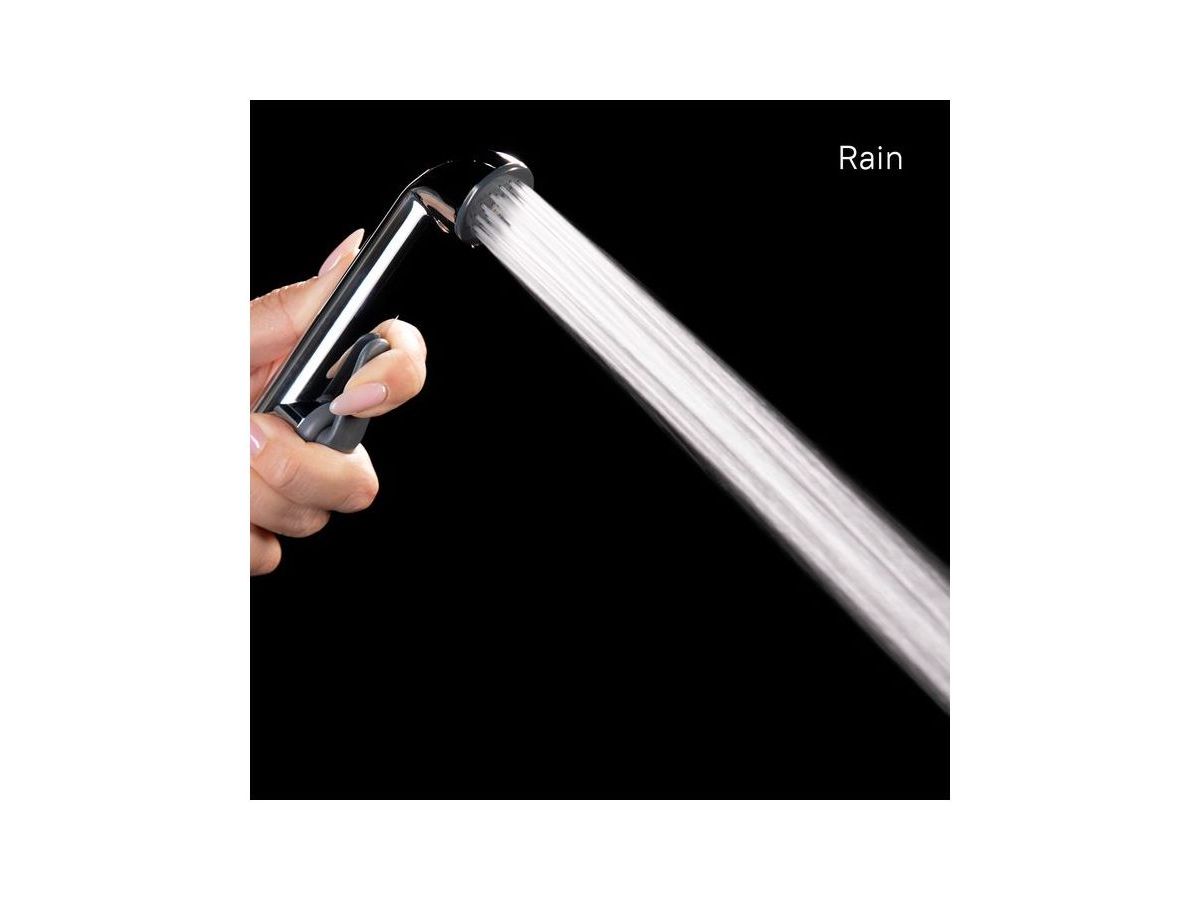 Гигиенический душевой комплект. Количество режимов лейки: 1 (Rain). Лейка гигиеническая (диаметр 33 мм, хром, ABS-пластик), держатель, шланг (1,5 м, нержавеющая сталь), крепеж.
