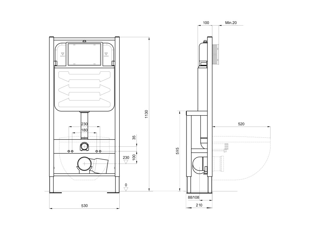 Система инсталляции Aquatek INS-0000016 не требует крепления к стене. Предназначена для крепления в каркасных стенах, в углу, перед несущей стеной или для отдельностоящего монтажа.