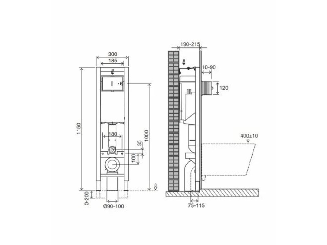 Совместима с моделями подвесных унитазов срасстоянием между креплениями 180 мм и 230мм