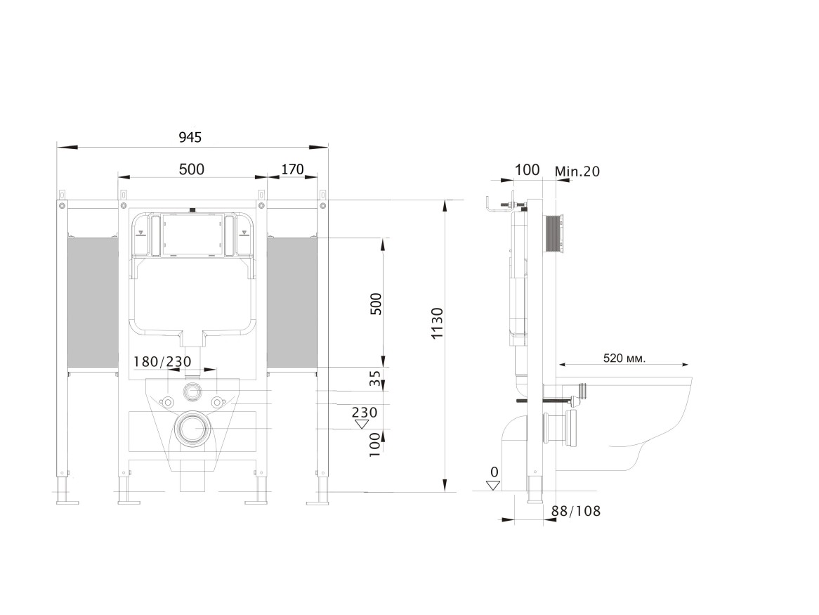 • Инсталляция совместима со смывными клавишами Geberit серии Sigma для механической системы смыва