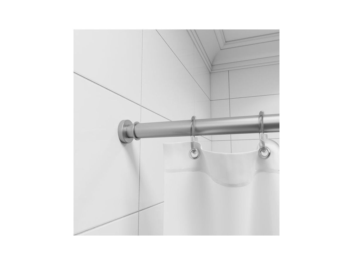 Карниз выполнен из легкого и прочного материала, имеет телескопическую конструкцию, что позволяет регулировать дляну от 110 до 200 см. Фиксация первого и последнего кольца препятствует разбрызгиванию воды при принятии душа. При установке карниз фиксируется между стен, с одной стороны установлена пружина, которая позволяет надежно закрепить карниз без использования дополнительных инструментов и крепежа.