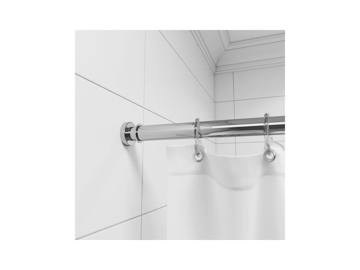 Карниз выполнен из легкого и прочного материала, имеет телескопическую конструкцию, что позволяет регулировать дляну от 110 до 200 см. Фиксация первого и последнего кольца препятствует разбрызгиванию воды при принятии душа. При установке карниз фиксируется между стен, с одной стороны установлена пружина, которая позволяет надежно закрепить карниз без использования дополнительных инструментов и крепежа.