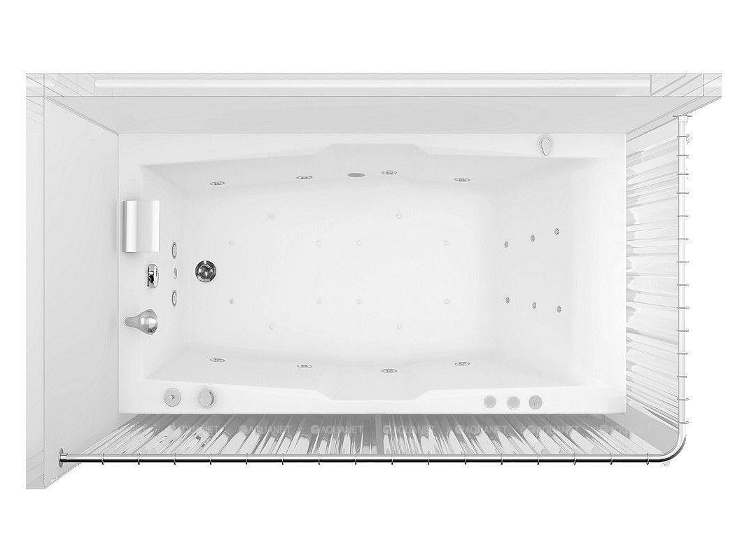 Карниз для ванной угловой Г-образный Aquanet 190х100 в точности повторяет ее форму. Удобен и надежен, а также долговечен, так как сделан из нержавеющей стали.