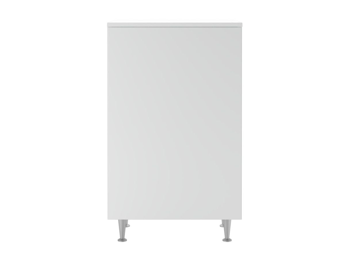 Корпус всей серии изготовлен из ЛДСП, а фасад из ЛМДФ, покрыт пленкой ПВХ. У напольной мебели возможна регулировка ножек до 30 мм, а для удобства в использовании на дверях установлены петли с доводчиком.