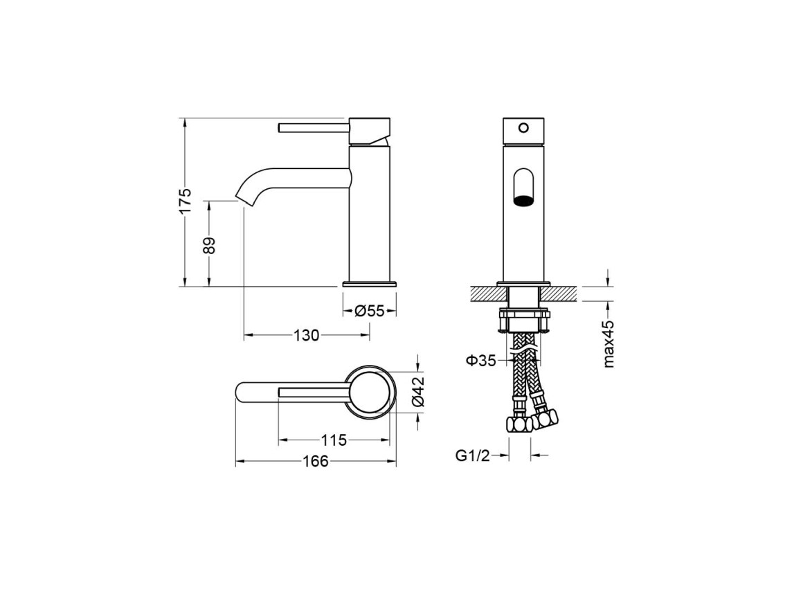 В комплекте: смеситель; гибкая подводка 60см; монтажный комплект