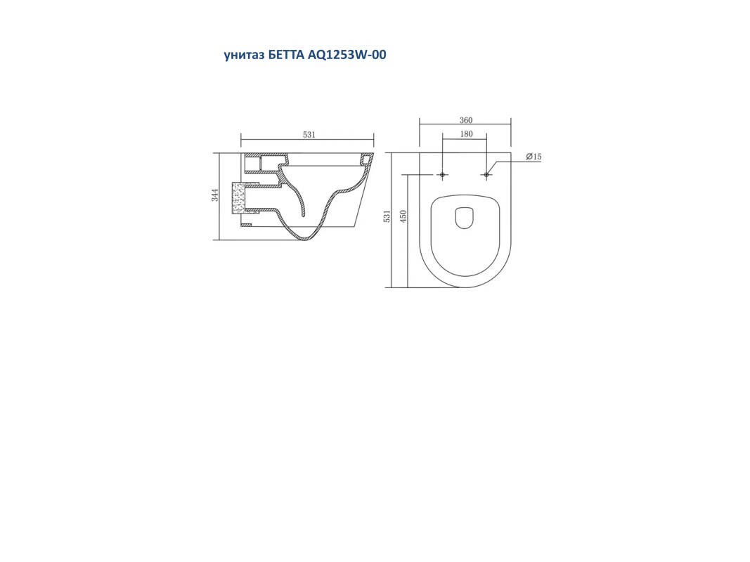 • Унитаз подвесной Aquatek БЕТТА AQ1253W-00 с тонким сиденьем soft-close