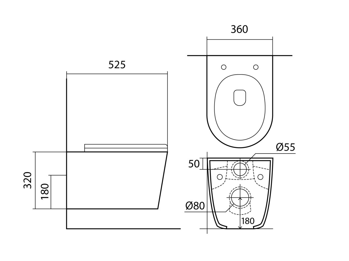 • Чаша унитаза безободковая 525x360x320