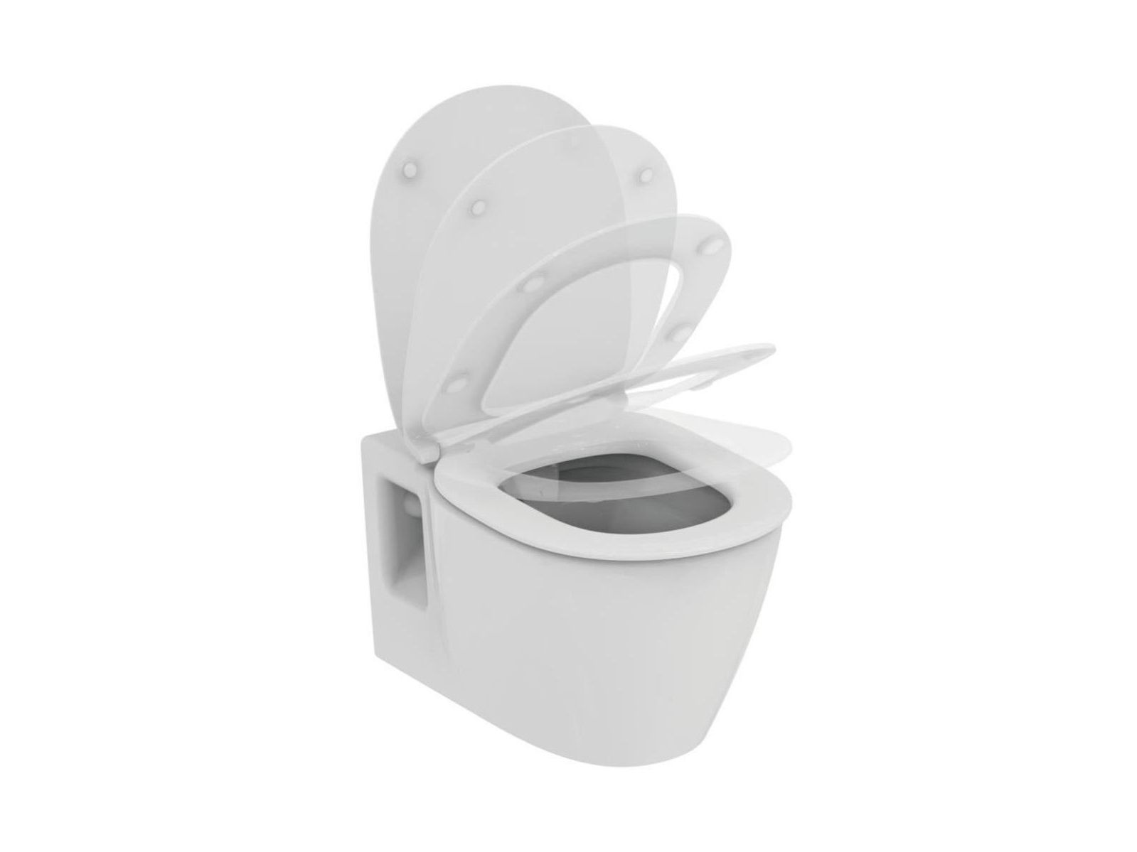 CONNECT Rimless Безободковый подвесной унитаз, глубокий смыв, с сидением и крышкой с функцией плавного закрытия E772401, без крепежа. Инновационная технология смыва Rimless обеспечивает идеальное качество смыв.Отсутствует нависающий обод, благодаря чему вода поступает с верхней точки чаши, обеспечивая 100% чистый смыв по всей поверхности