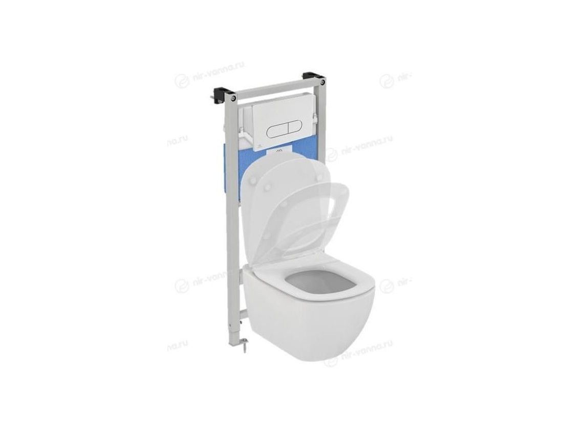 Унитаз с инсталляцией Ideal Standard Prosys Tesi P3868V1 открывает множество вариаций планировки. Такой комплект является вашим удачным приобретением. Унитаз произведен из такого качественного материала, как фарфора. Обратите внимание, какая у него минималистичная овальная форма. Внедренный в конструкцию тип смыва называется )#. Для установки предлагается инсталляция, которая соответствует всем техническим требованиям. Модуль инсталляции выполнен в виде металлической цельной конструкции, которая жестко фиксируется к полу, стене или ранее установленным профилям. На раму монтируется вся арматура, для чего она оснащена шпильками и резьбовыми гнездами, в которые вкручиваются крепежные болты. Для модели приемлема #.(Подвесная установка. Важным козырем такого типа монтажа является технология негромкого смыва, так как стена, скрывающая бачок, скрадывает громкие звуки.