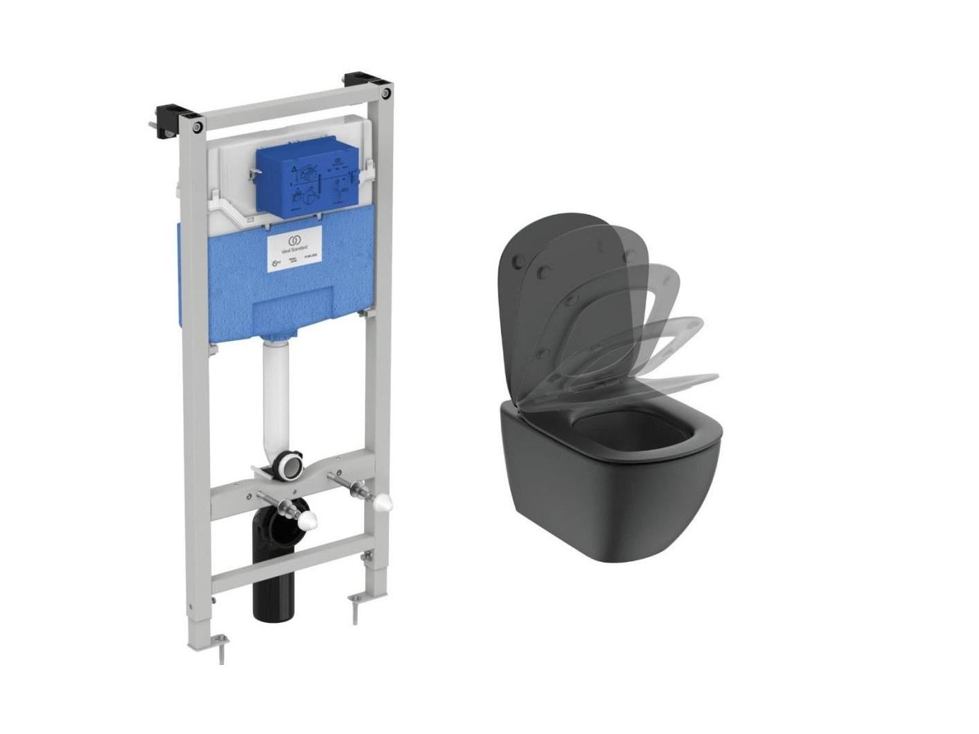 Промо-комплект TESI, состоящий из: R020467 PROSYS 120 M Встраиваемая инсталляция для монтажа подвесных унитазов,T0079V3 TESI AquaBlade® Подвесной унитаз, глубокий смыв, сидение и крышка T3527V3. Для монтажа перед капитальной стеной или между двумя гипсокартонными стенами (в соответствии с инструкцией). Рама тестирована нагрузкой 400 кг; устойчива к коррозии и царапинам. Легкая и быстрая установка при помощи системы EasyFix system. Сливной патрубок регулируется по глубине. Регулируемая высота от 0 до 200 мм. Минимальная толщина 125 мм. Встраиваемый бачок с фронтальным механическим управлением. Возможно пневматическое или электронное управление при помощи переходников, приобретаемых дополнительно. Двойной смыв, пред-установка 6/3 л. Три варианта объема смыва с возможностью быстрой регулировки - 4/2, 6/3 или 7/3 л. Полипропиленовый бачок, устойчивый к термальным перепадам; прокладка против конденсата в комплекте. Технология SmartValve позволяет экономить до 9 л воды в день; маркировка CE EN 14055 CL1; тихий клапан, соответствующий стандарту NF, категория Class I; толщина бачка 120 мм. Аксессуары в комплекте: крепеж для унитаза, крепежи для рамы, подсоединения входящей и сливной труб, сливной патрубок (колено) с адаптором Ø90/110 мм,резиновая прокладка для унитаза Ø45 мм, защитная коробка, запорный клапан G ½".