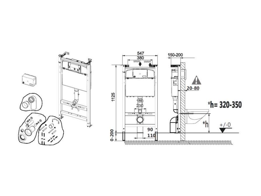 • Для унитазов с межосевым расстоянием 180 и 230 мм
