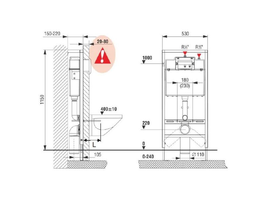 - Инсталляционная система с бачком, оснащенным механизмом двойного смыва на 3/6 л