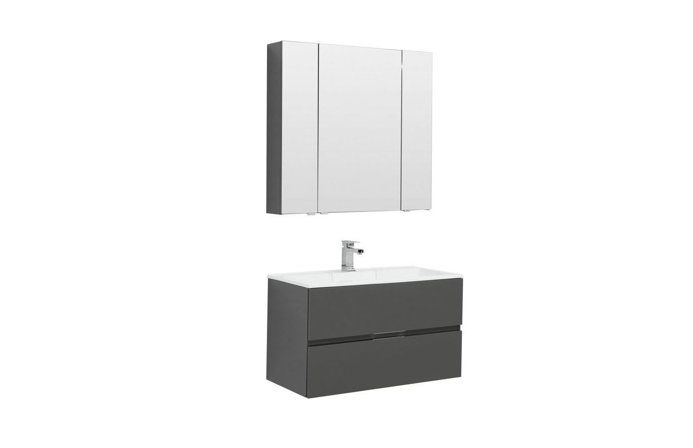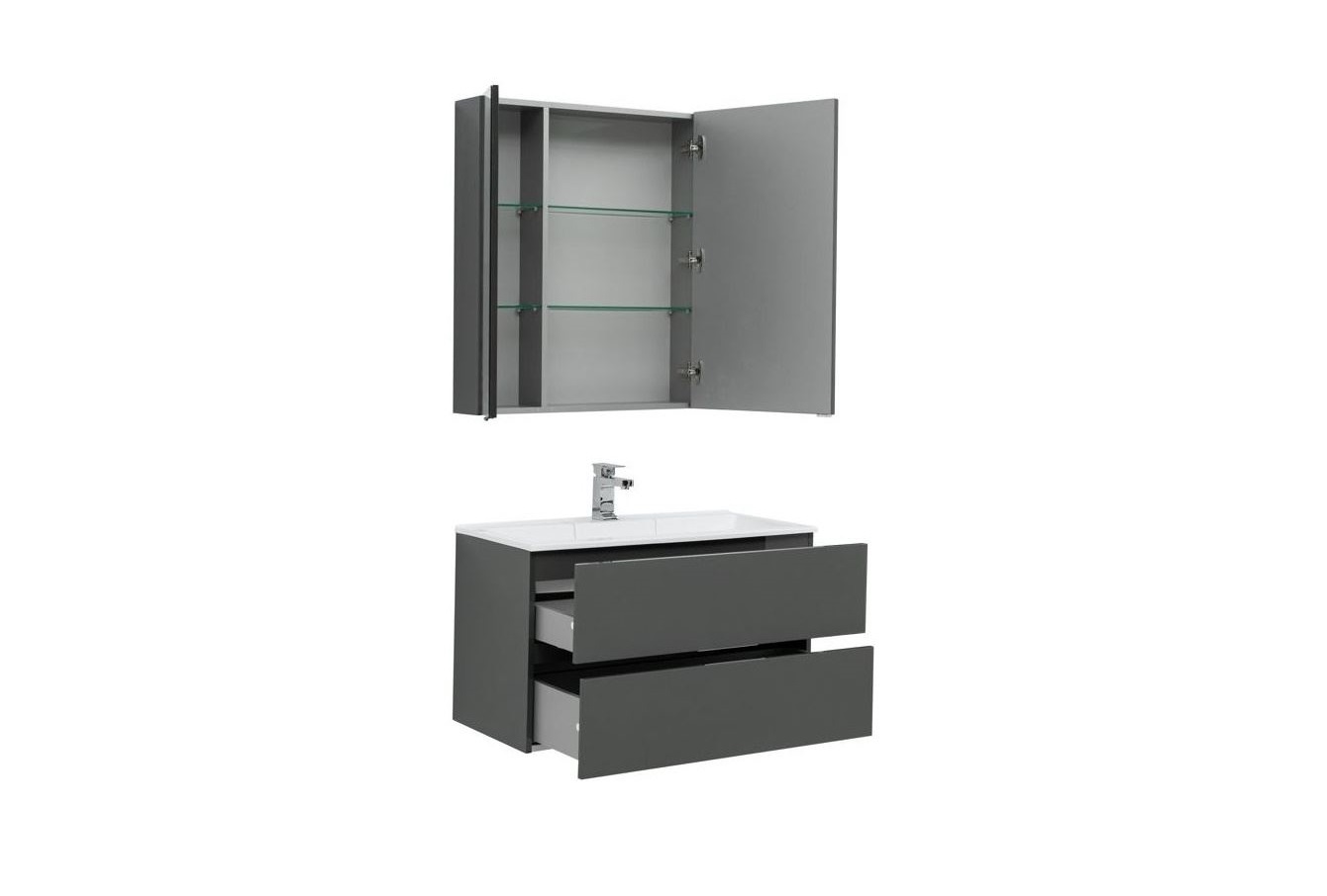 - Тумба: Aquanet Алвита 90, цвет серый антрацит, 2 выдвижных ящика (240111)