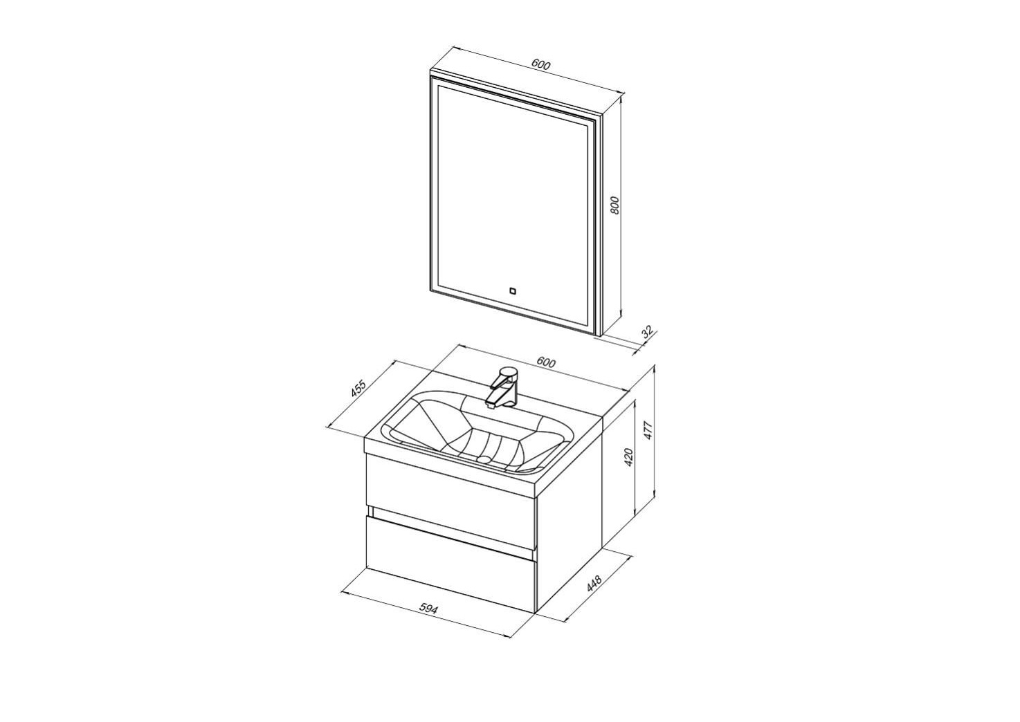 Набор мебели комплектуется зеркалом с LED-подсветкой из коллекции Nova Lite, соответствующий по цветовой гамме и стилистике.