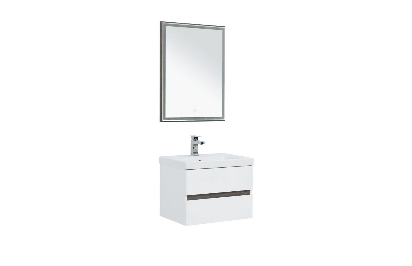 - Тумба: Aquanet Беркли 60, цвет белый/дуб рошелье, 2 выдвижных ящика (254289)