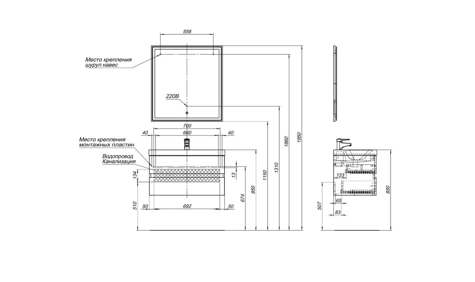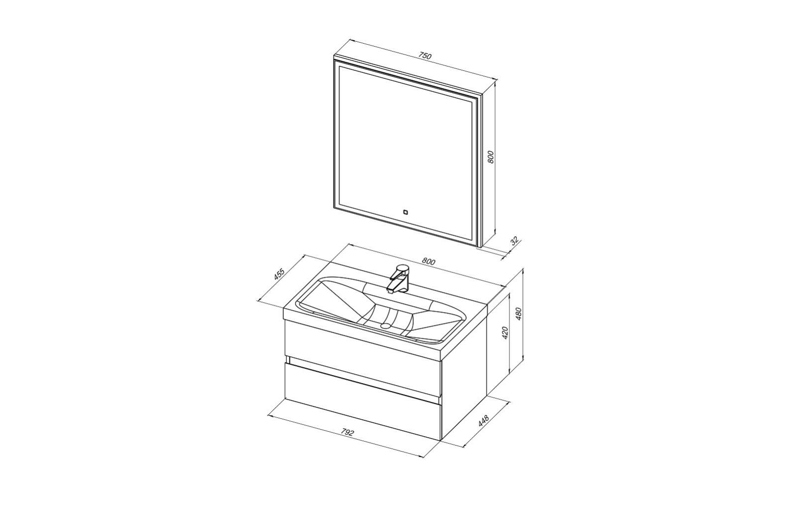 Набор мебели комплектуется зеркалом с LED-подсветкой из коллекции Nova Lite, соответствующий по цветовой гамме и стилистике.