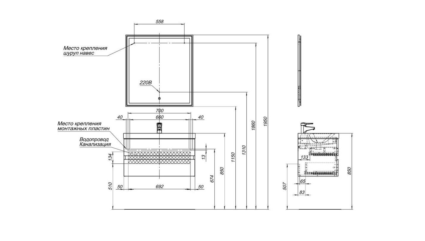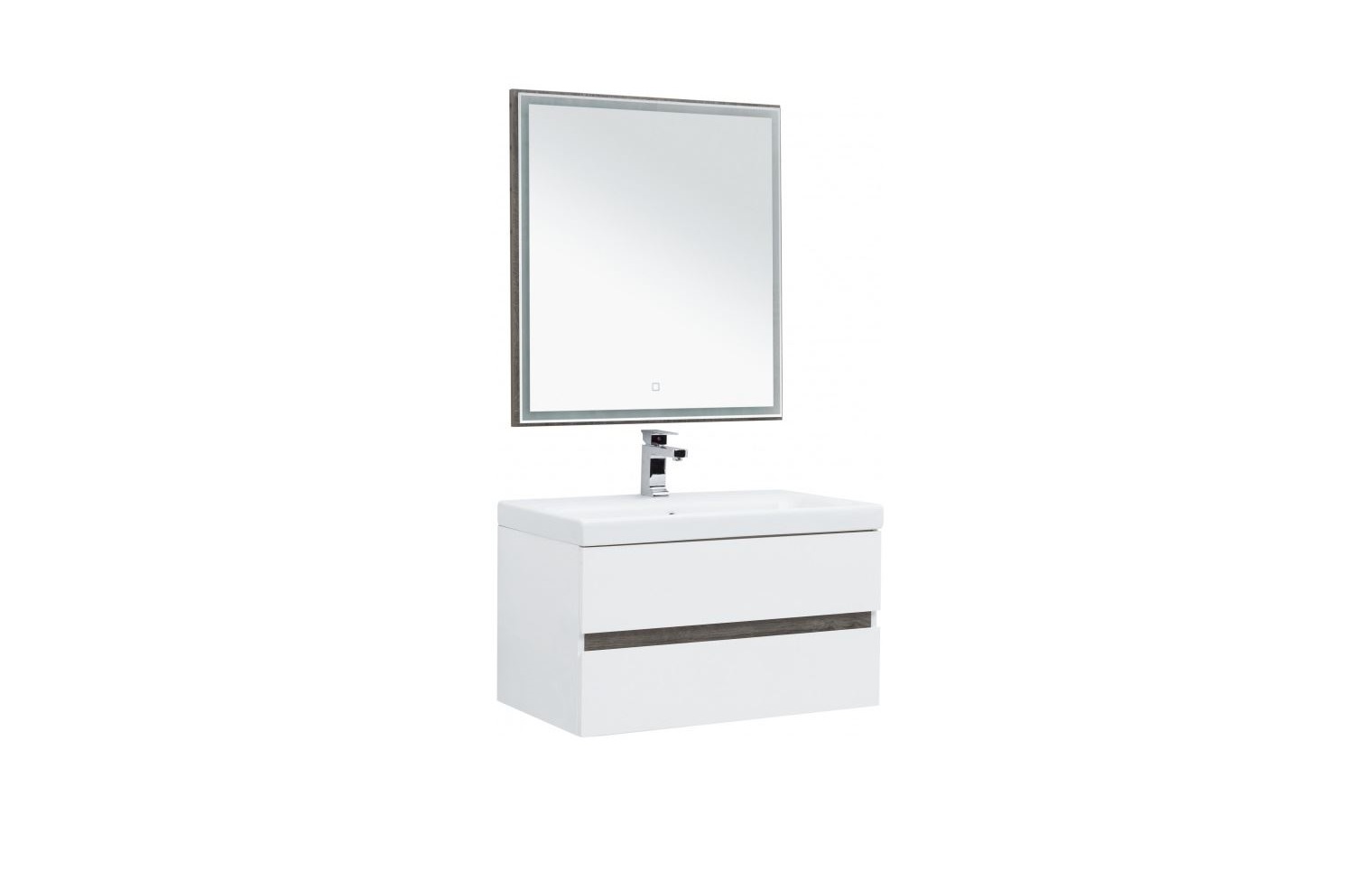 Набор мебели комплектуется зеркалом с LED-подсветкой из коллекции Nova Lite, соответствующий по цветовой гамме и стилистике.