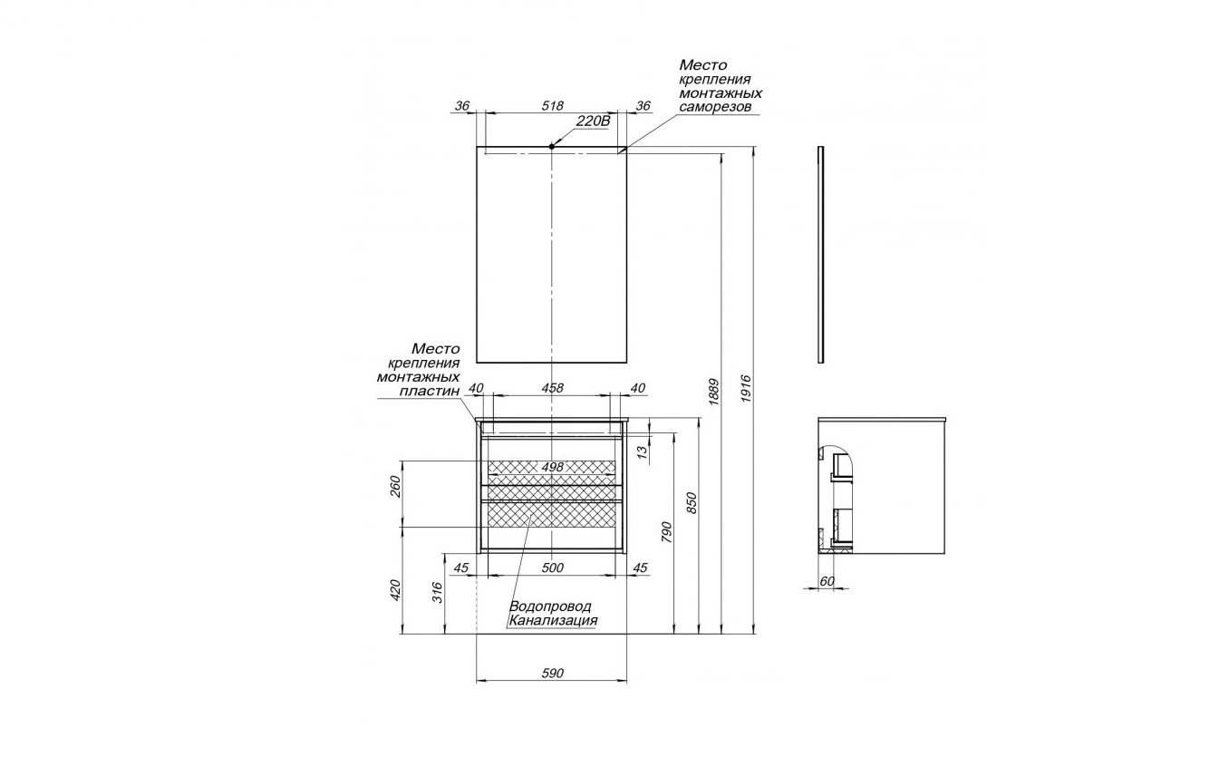 Корпус и фасады тумбы шириной 60 см – из влагостойкого ЛДСП. Сверху установлена раковина «Электра» из литьевого мрамора. У нее максимально глубокая и объемная чаша, но все внутренние детали скруглены.