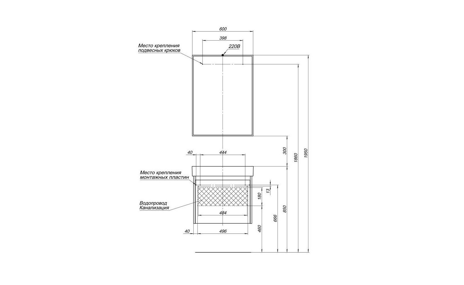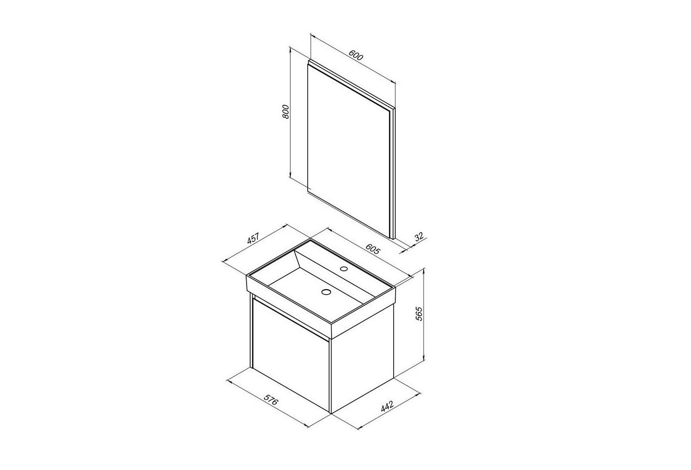 Комплект дополняет зеркало с LED-подсветкой по периметру.