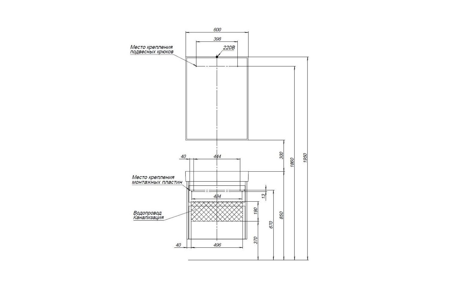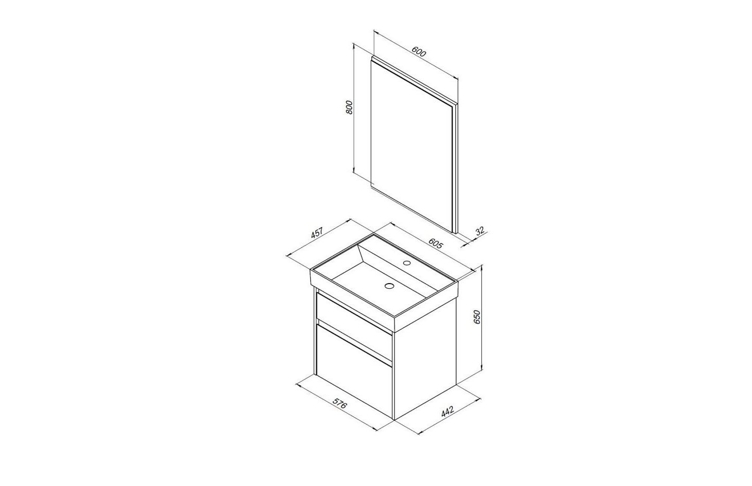 Фактура натурального дерева выглядит благородно, а подвесной монтаж придает визуальную легкость тумбе шириной 60 см. Она оборудована двумя выдвижными ящиками. Ящики довольно вместительные и позволяют разместить все необходимое.