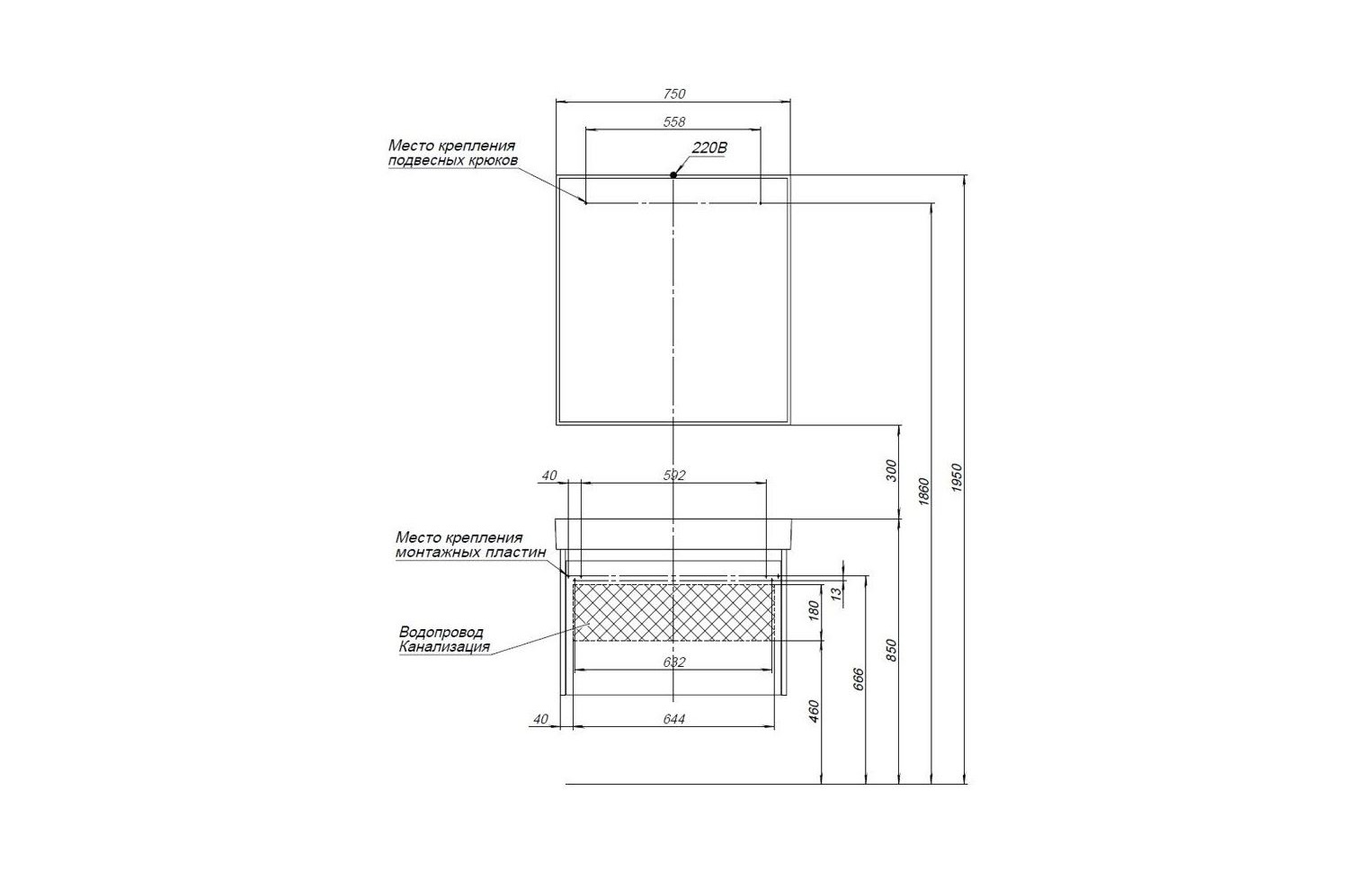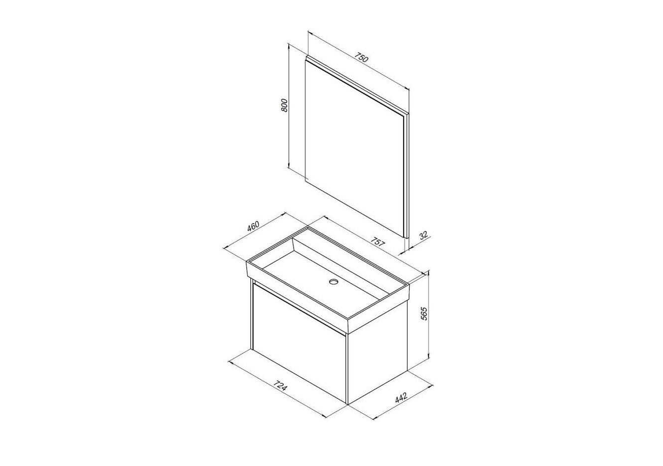 Фактура натурального дерева выглядит изысканно, а подвесной монтаж придает визуальную легкость тумбе шириной 75 см. Тумба оборудована одним большим ящиком, внутри которого предусмотрен маленький с выемкой для установки сифона и разделителями, где удобно хранить необходимые в ванной комнате мелочи.