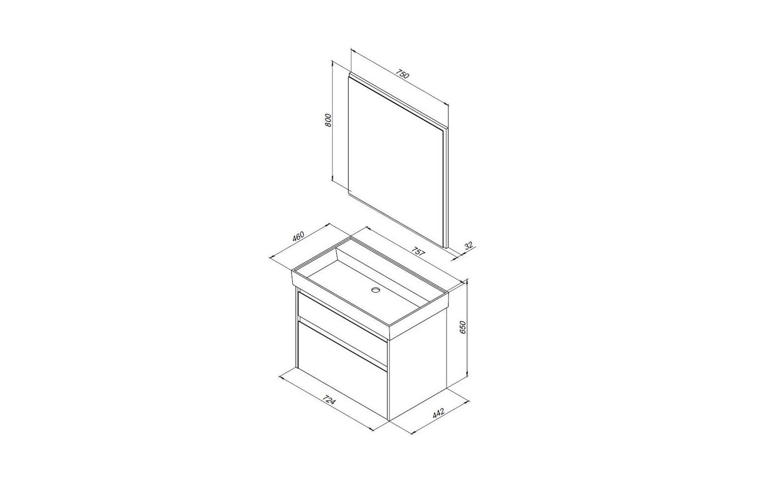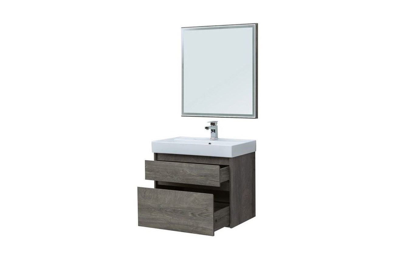 Фактура натурального дерева выглядит изысканно, а подвесной монтаж придает визуальную легкость тумбе шириной 75 см. Она оборудована двумя выдвижными ящиками. Ящики довольно вместительные и позволяют разместить все необходимое.