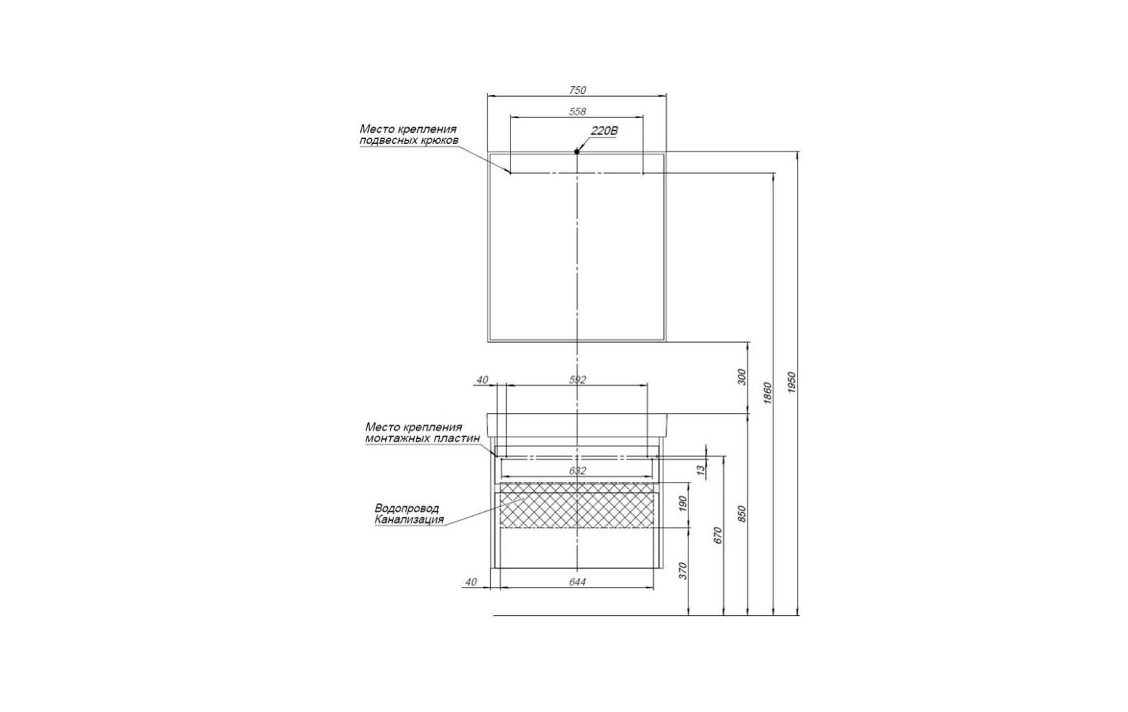 Фактура натурального дерева выглядит благородно, а подвесной монтаж придает визуальную легкость тумбе шириной 75 см. Она оборудована двумя выдвижными ящиками. Ящики довольно вместительные и позволяют разместить все необходимое.