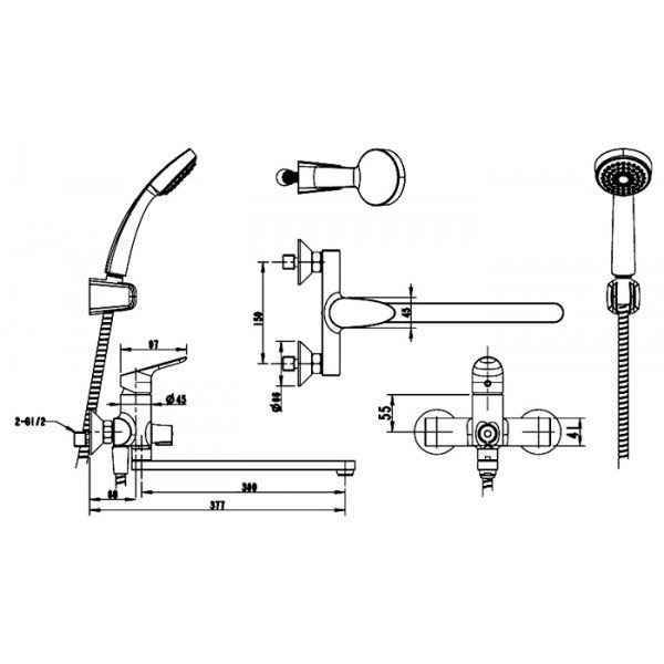 Смеситель для ванны с коротким изливом + шланг/душ, F64898C-B