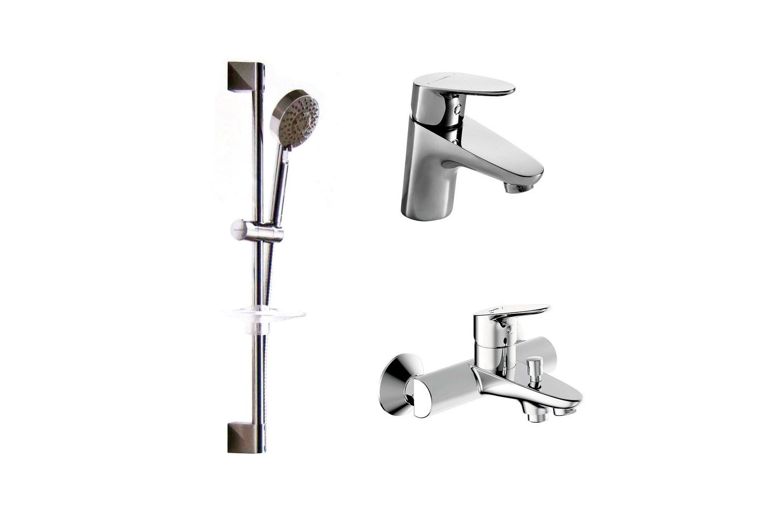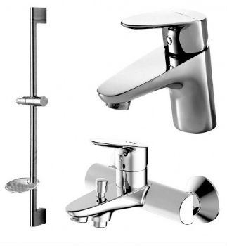 Промо-набор Bravat Drop F00308 3 в 1 представляет стильные смесители и душевые гарнитуры, создающие единый образ ванной. Хромированное зеркальное покрытие отлично подчеркивает округлый современный дизайн смесителей и не требует специального ухода.