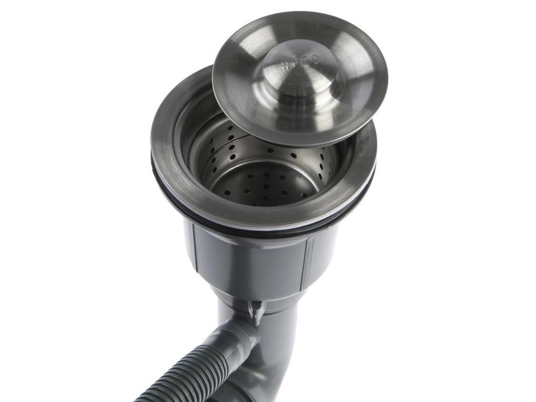 - Выпуск-сливная «корзинка» с диаметром снабжена съёмным «ситечком» и крышкой-затвором, которые удобно вынимать для чистки слива.