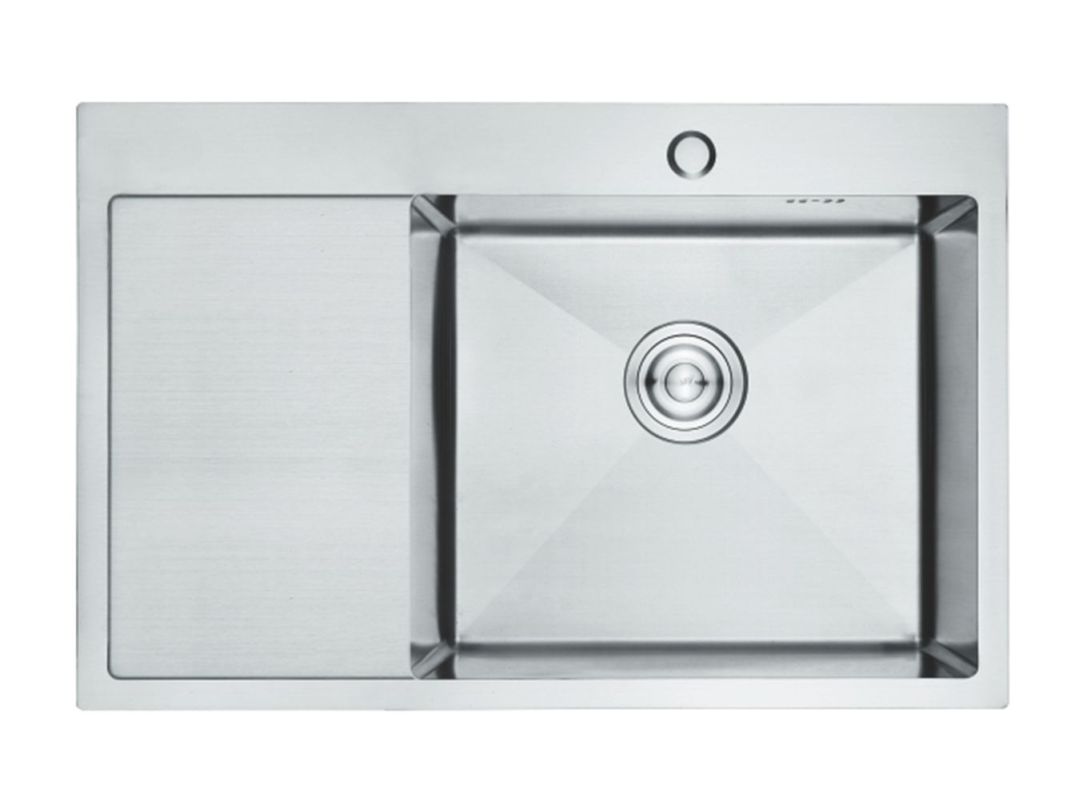 Кухонная мойка из пищевой нержавеющей стали марки 304 толщиной до 3 мм. Мойка полностью ручной работы, что определяет ее премиальный сегмент.