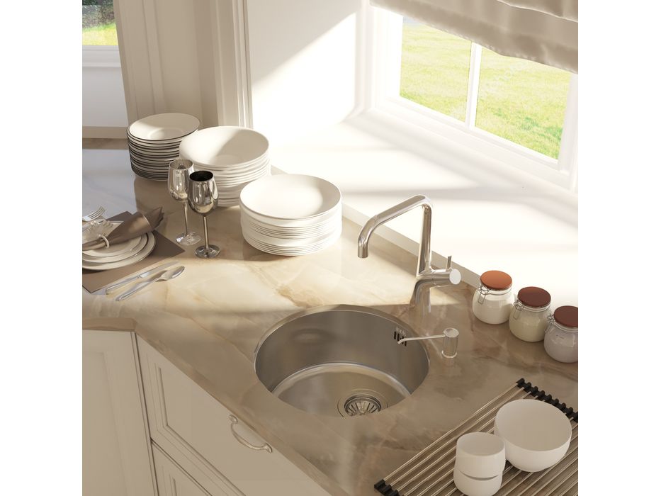 Круглая мойка Edifice из линейки Kitchen Line от IDDIS® перевернет представление о привычных кухонных мойках благодаря своему современному дизайну и эргономичности, достойных кухни профессионального шеф-повара. Несомненное преимущество серии — крепление под столешницей, исключающее загрязнение краев мойки и позволяющее легко поддерживать эстетичный вид рабочей поверхности. Мойка Edifice подойдет к большинству современных кухонных гарнитуров и тумб от 45 см. В комплектацию входит все необходимое для установки мойки: механический выпуск и 2 вида креплений для подстольного и врезного монтажа.
