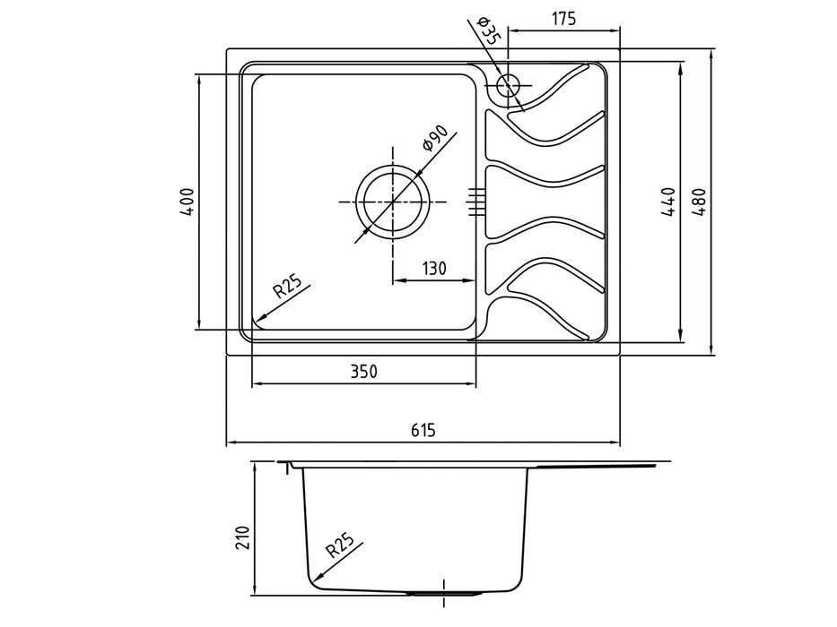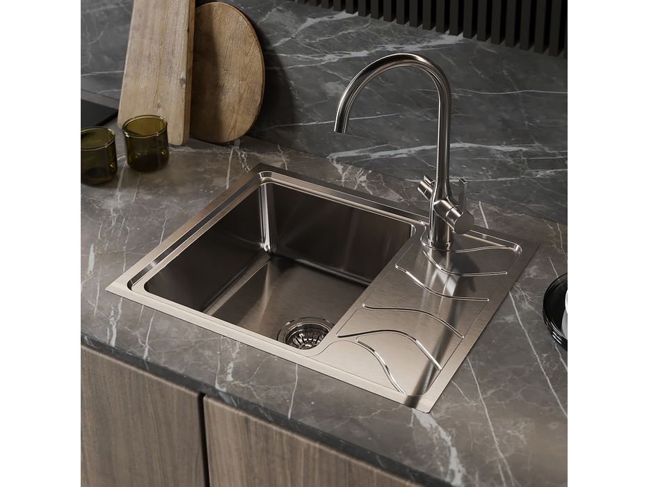 Оригинальный рисунок крыла моек в коллекции Reeva напоминает речные волны. Исключительно малый радиус закругления углов и увеличенная глубина чаши 210 мм позволяют вмещать даже габаритную посуду. Прямоугольная мойка Reeva с шелковистой поверхностью подойдет к большинству современных кухонных гарнитуров и тумб от 45 см. Справа мойка оснащена крылом, на котором удобно сушить вымытую посуду, овощи или фрукты. Компактные габариты крыла позволяют сохранить больше полезного пространства кухонной зоны, не в ущерб его функциональности. Мойка полностью готова к установке, все необходимое для монтажа есть в комплекте: крепеж, эластичная уплотнительная лента, которая защитит периметр мойки от протечек.