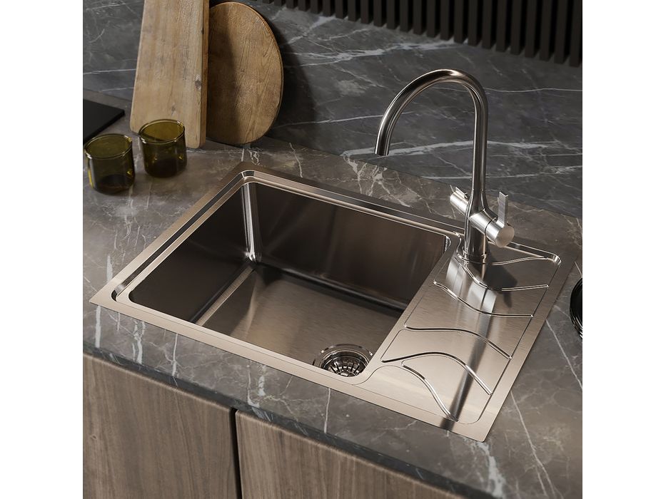 Оригинальный рисунок крыла моек в коллекции Reeva напоминает речные волны. Исключительно малый радиус закругления углов и увеличенная глубина чаши 210 мм позволяют вмещать даже габаритную посуду. Прямоугольная мойка Reeva с шелковистой поверхностью подойдет к большинству современных кухонных гарнитуров и тумб от 50 см. Справа мойка оснащена крылом, на котором удобно сушить вымытую посуду, овощи или фрукты. Мойка полностью готова к установке, все необходимое для монтажа есть в комплекте: крепеж, эластичная уплотнительная лента, которая защитит периметр мойки от протечек.