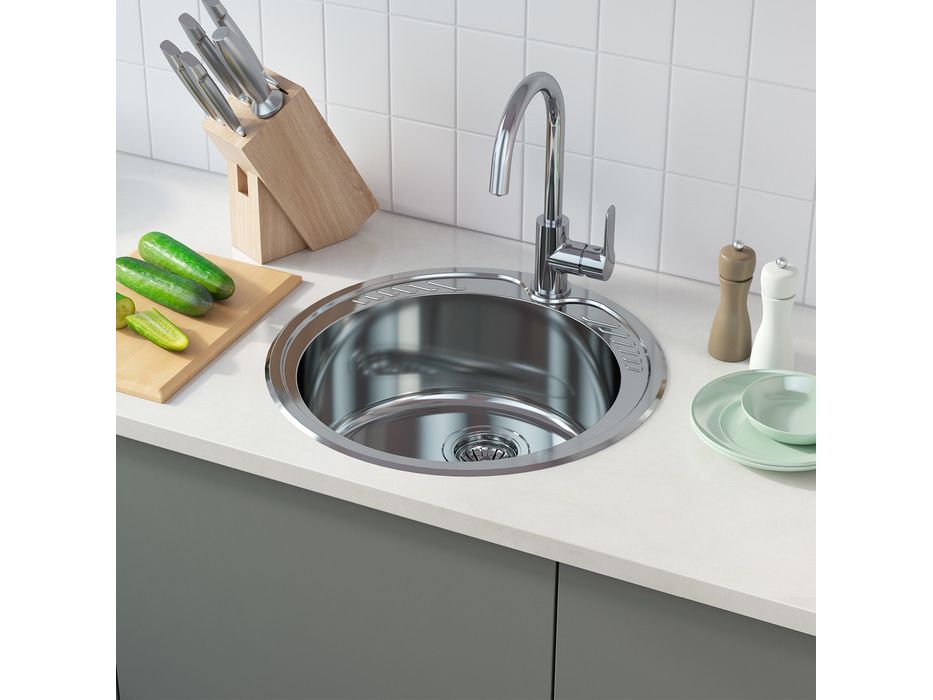 Коллекцию кухонных моек Suno отличают округлые очертания чаши, что обеспечивает высокую эргономичность использования кухонного пространства и эстетичность интерьера. Полированная мойка диаметром 510 мм украшена лаконичным, но стильным узором. Благодаря своей форме изделие прекрасно подойдет для небольших кухонь (с гарнитурами и тумбами от 45 см), где на счету каждый сантиметр рабочей поверхности. Мойка Suno полностью готова к установке, все необходимое для монтажа поставляется в комплекте: крепеж, шаблон для выреза столешницы и эластичная уплотнительная лента.