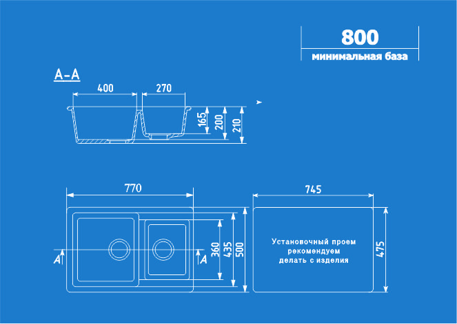 Общий размер мойки