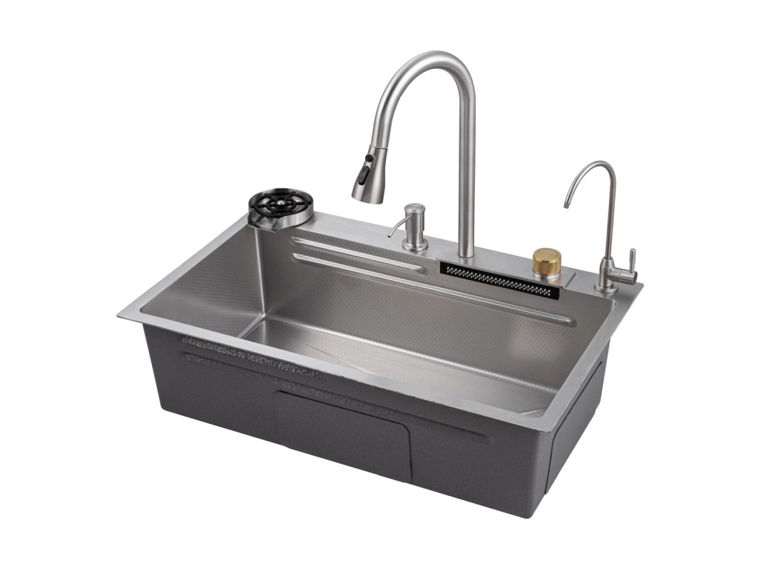 боковой отвод воды позволяет разместить больше кухонных принадлежностей