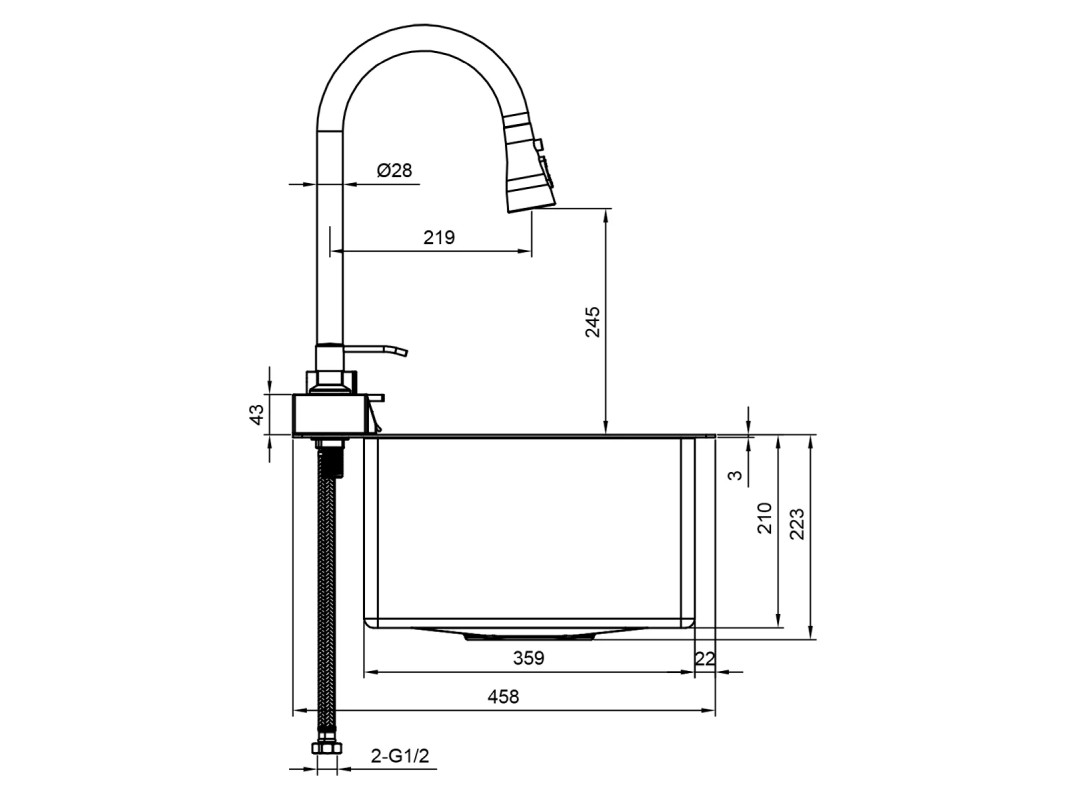 - В комплекте с мойкой идет полуавтоматический ринзер, который позволяет облегчить процесс промывки стаканов и других кухонных предметов. Это удобное дополнение, которое обеспечивает сильный и точечный напор воды для более эффективной очистки.