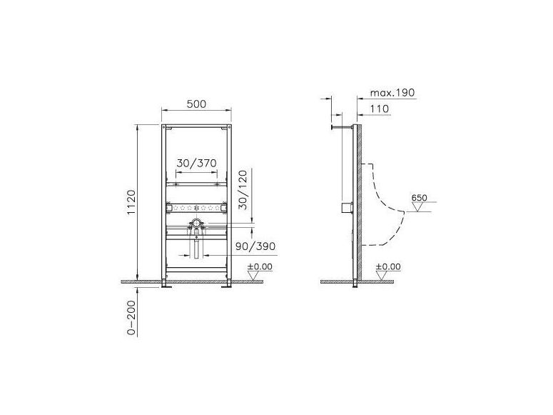 -Рама VitrA для писсуаров для установки за гипсокартонной перегородкой и перед капитальной стеной.