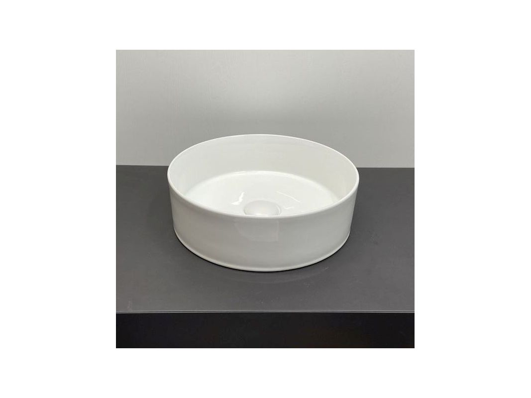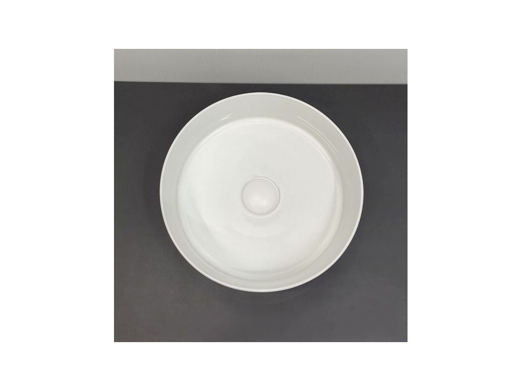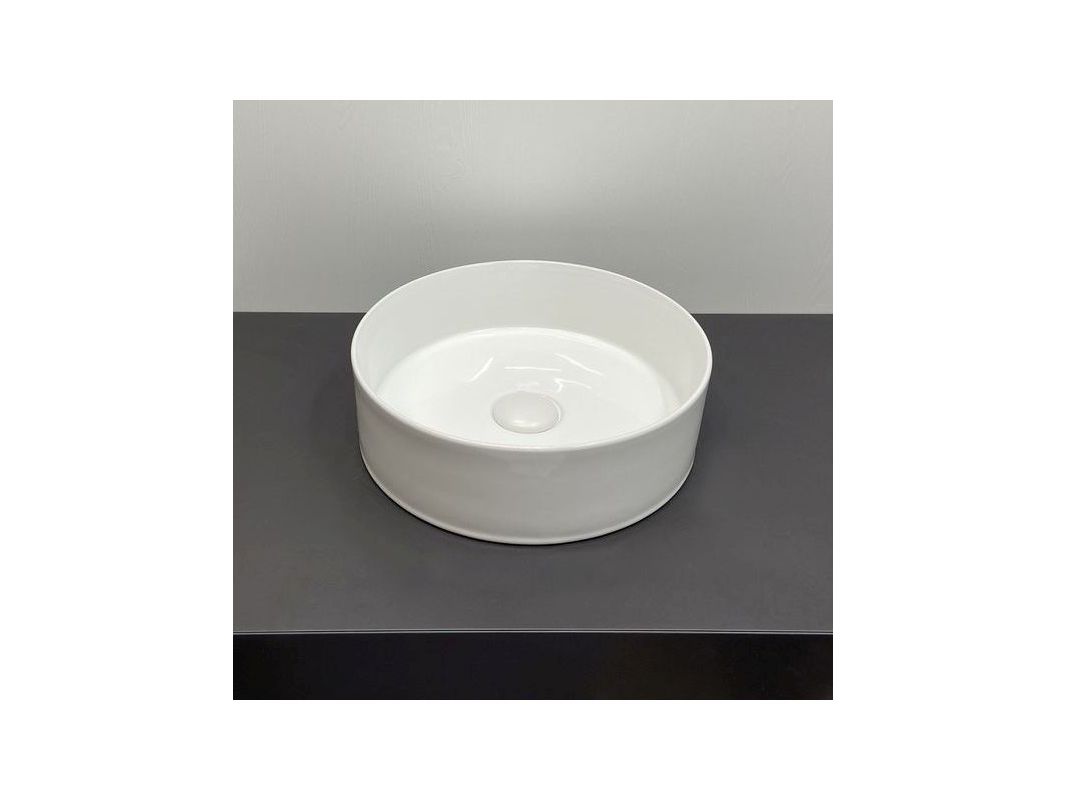 Накладная круглая раковина чаша Comforty 9111 белая глянцевая для установки на тумбу или столешницу.