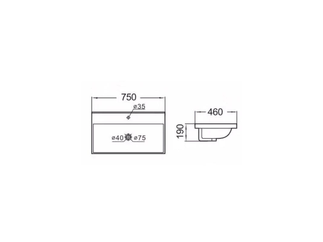 Габаритные размеры ШхВxГ: 750*190*460 мм Указанные предельные отклонения в размерах на раковинах варьируются от +/- 25 мм