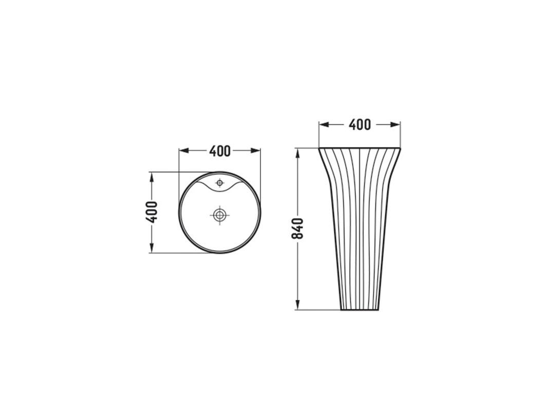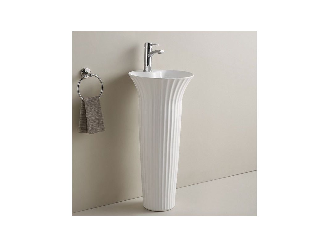 С площадкой для установки смесителя Напольная раковина моноблок позволяет скрыть подведенные коммуникации