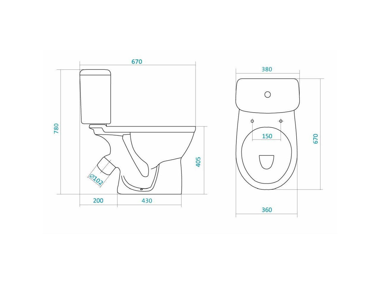 Унитаз компакт с диагональным выпуском «Антивсплеск», с двухрежимной арматурой Siamp