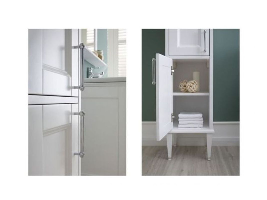 Шкаф-пенал Aquanet Бостон М 36 белого цвета очень интересен внешне. Фрезеровка по белоснежным матовым фасадам и по боковым частям модели придает внешнему виду изделия достойный и благородный вид, свойственный классике. Но утонченные ручки, словно ниточки поблескивающие на фасадах, визуальная легкость изделия напоминает о модерне. Пенал при ширине 36 см и глубине 33 см предоставляет просторную зону хранения. За двумя распашными дверцами в нем, расположенными одна под другой, скрыты сразу пять полочек. Пенал имеет два варианта монтажа. Базовый – подвесной. Кроме того, специально для этой коллекции были разработаны очень элегантные ножки, выполненные из массива и окрашенные в белый цвет. С такими ножками мебель приобретает благородный вид и еще больше тяготеет по своему стилю к классике.