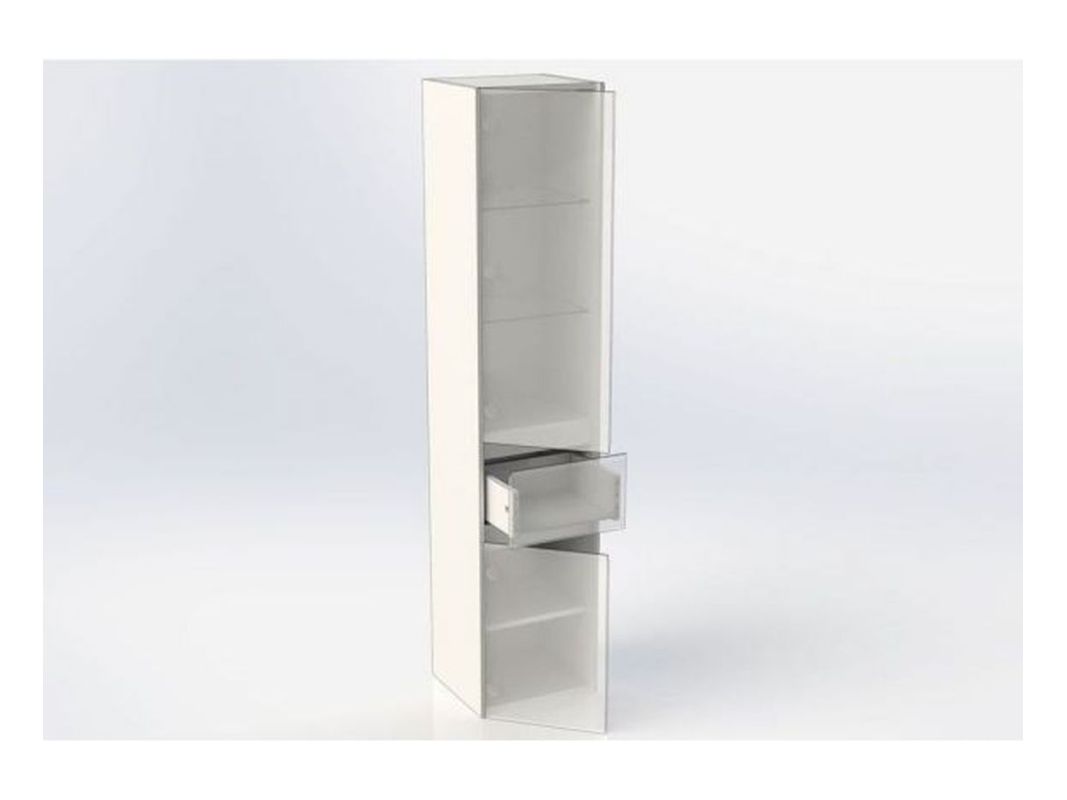 Шкаф-пенал для ванной Aquanet Бруклин 35 белого цвета для подвесной установки Изделие отвечает тенденциям минимализма Аскетизм четких линий и обтекаемых форм в ней доведен до совершенства В модели нет никаких выделяющихся деталей, и даже ручки интегрированные, когда открывание происходит за счет выступающей детали верхней или нижней части фасада, которая срезана под углом, в результате чего образуется выемка, служащая ручкой. В пенале две зоны хранения разделены выдвижным ящиком, где удобно хранить мелкие предметы В верхней зоне хранения три полки, в нижней – две. Корпус изделия выполнен из выкрашенного белой краской влагостойкого ЛДСП, фасады – из МДФ На контрасте с белизной внешних деталей стильно смотрится корпус выдвижного ящика, выполненный в цвете «дуб сонома»
