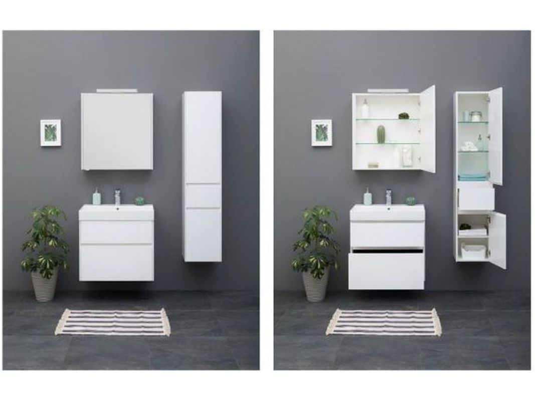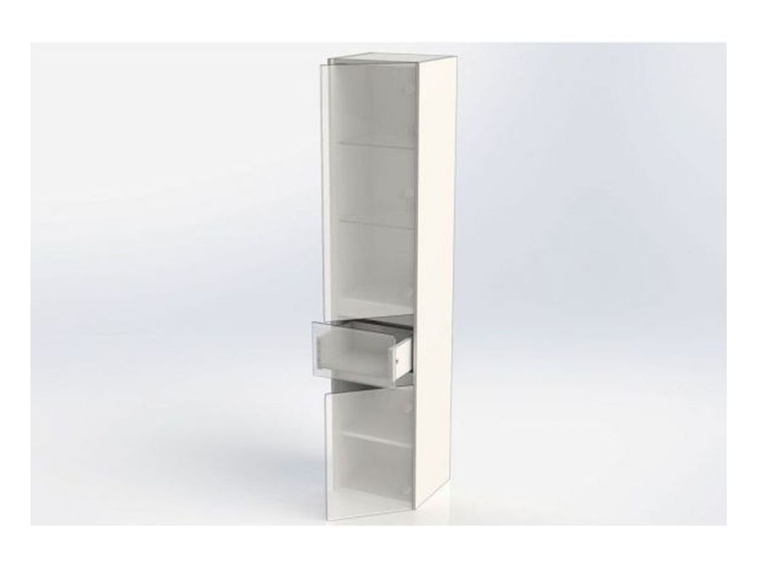 Шкаф-пенал для ванной Aquanet Бруклин 35 белого цвета для подвесной установки Изделие отвечает тенденциям минимализма Аскетизм четких линий и обтекаемых форм в ней доведен до совершенства В модели нет никаких выделяющихся деталей, и даже ручки интегрированные, когда открывание происходит за счет выступающей детали верхней или нижней части фасада, которая срезана под углом, в результате чего образуется выемка, служащая ручкой. В пенале две зоны хранения разделены выдвижным ящиком, где удобно хранить мелкие предметы В верхней зоне хранения три полки, в нижней – две. Корпус изделия выполнен из выкрашенного белой краской влагостойкого ЛДСП, фасады – из МДФ На контрасте с белизной внешних деталей стильно смотрится корпус выдвижного ящика, выполненный в цвете «дуб сонома»