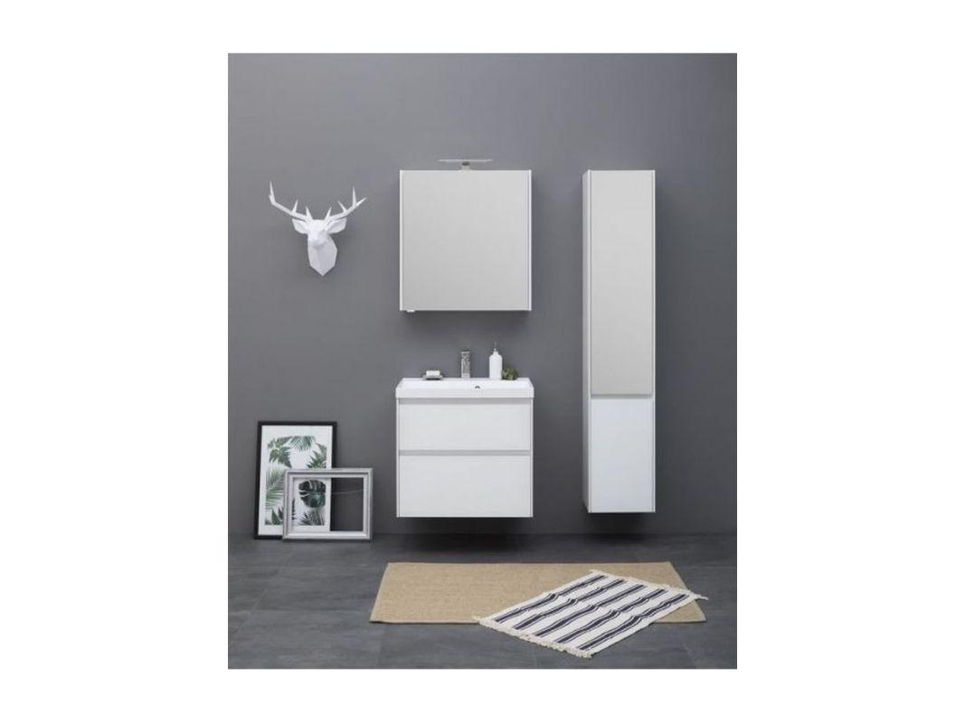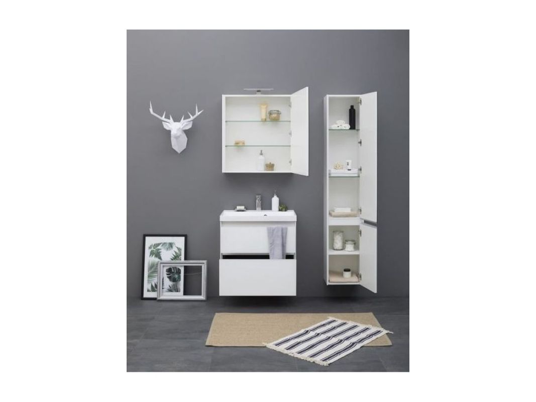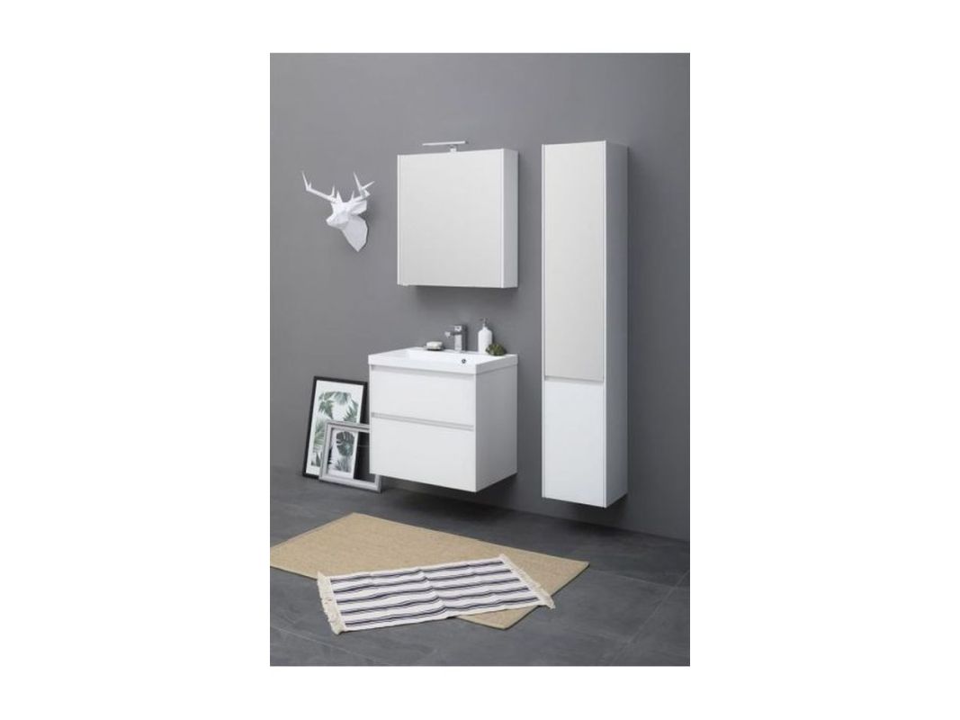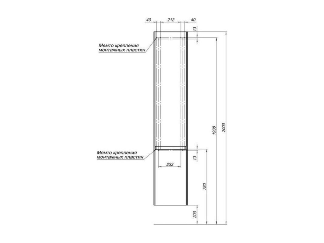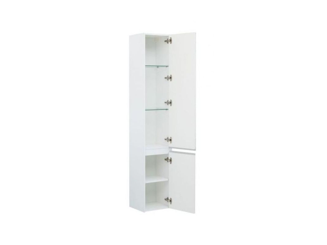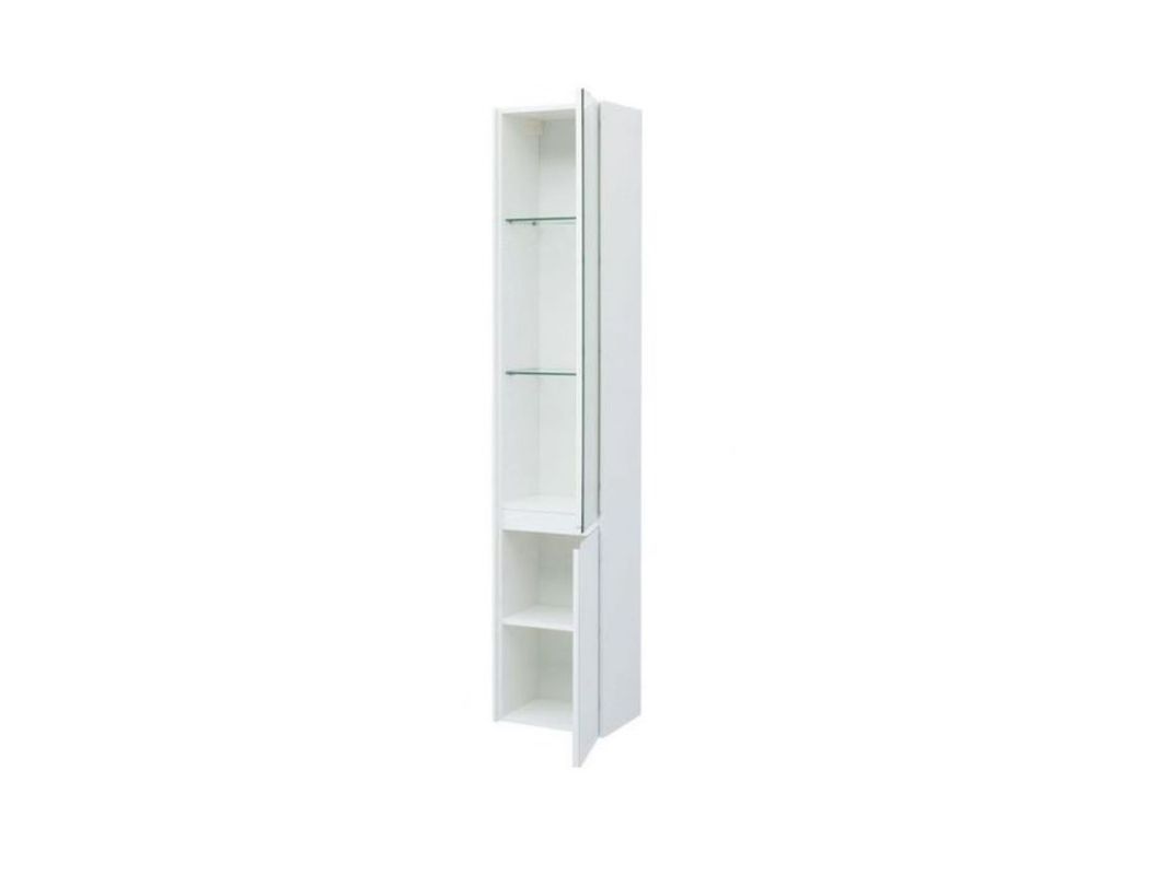 Пенал: Aquanet Гласс 35, цвет белый, фасад с белым матовым стеклом и зеркалом, 2 распашные дверцы (196962)