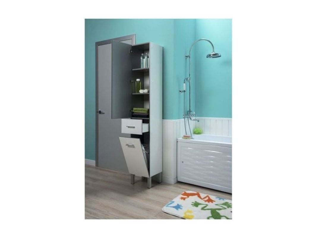 Напольный пенал Aquanet Верона 35 белый глянец L с бельевой корзиной обладает компактными габаритами, ему наверняка найдется место даже в условиях ограниченного пространства ванной комнаты. Строгая форма корпуса и стильная хромированная фурнитура придают модели актуальное звучание, подойдет для всех современных стилей. Олицетворение простоты и функционализма. Приличный внутренний объем позволяет разместить все необходимые косметические средства, придав комнате опрятный вид. Белая глянцевая поверхность пенала визуально расширяет пространство, поможет создать атмосферу свежести и чистоты. Модель благодарна любым сочетаниям, в том числе ярким цветам и узорам.